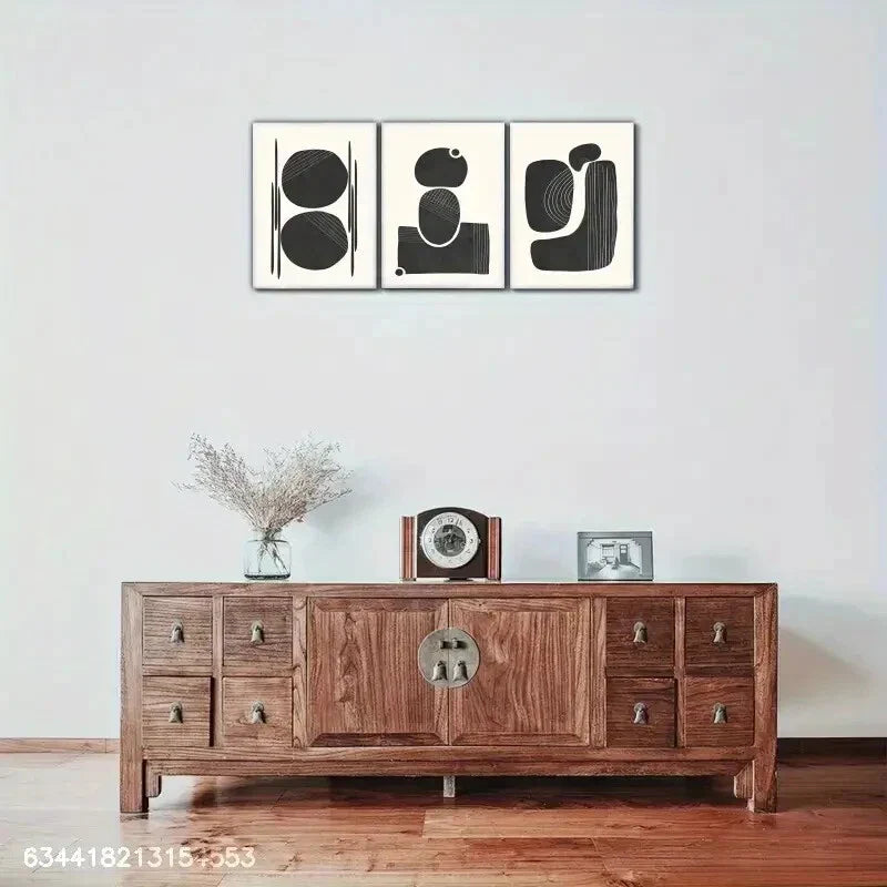 3pcs Abstract Minimalist Black & White Geometric Metal Print Ready to Hang Art
