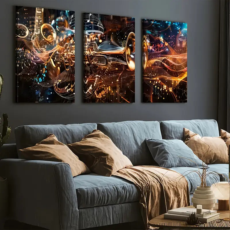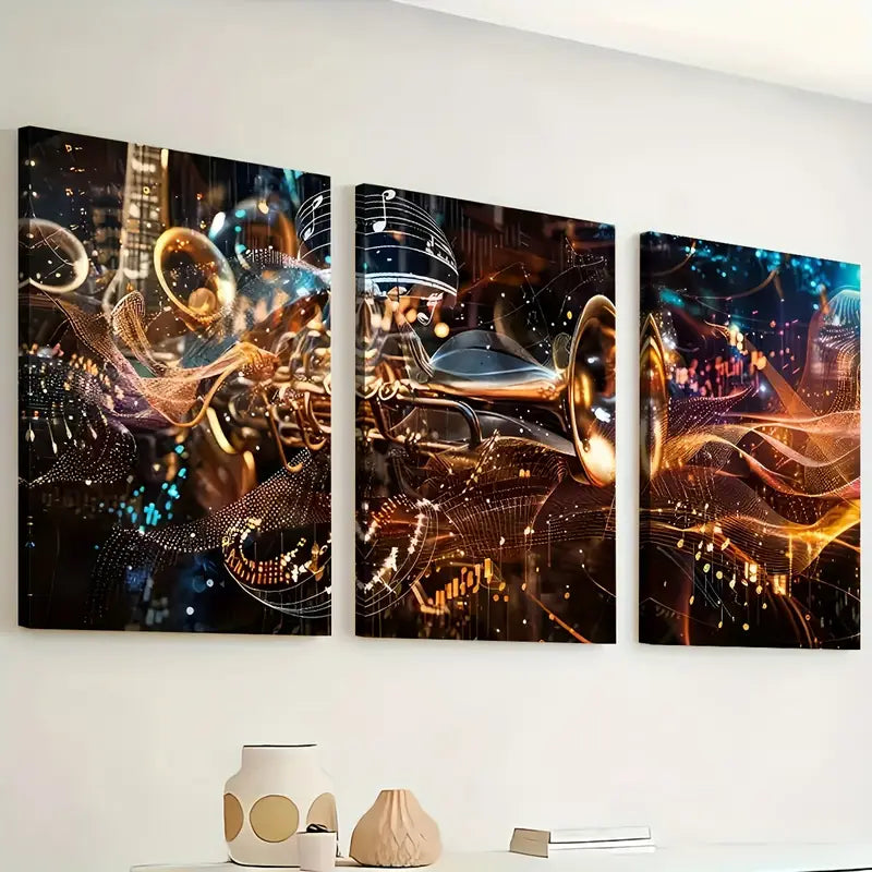 3pcs Abstract Modern Fashion Musical Instrument Art Trumpet Wall Art Set Canvas Framed 40x60cm - High Quality Print 100% Australian Made Wall Canvas Ready to Hang