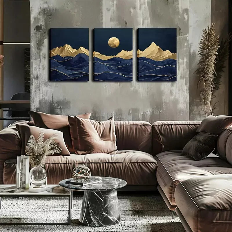 3pcs Abstract Mountain And Moon Wall Art Set Canvas Framed 40x60cm - High Quality Print 100% Australian Made Wall Canvas Ready to Hang