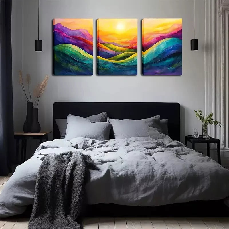 3pcs Abstract Mountain And Sunrise Wall Art Set Canvas Framed 40x60cm - High Quality Print 100% Australian Made Wall Canvas Ready to Hang