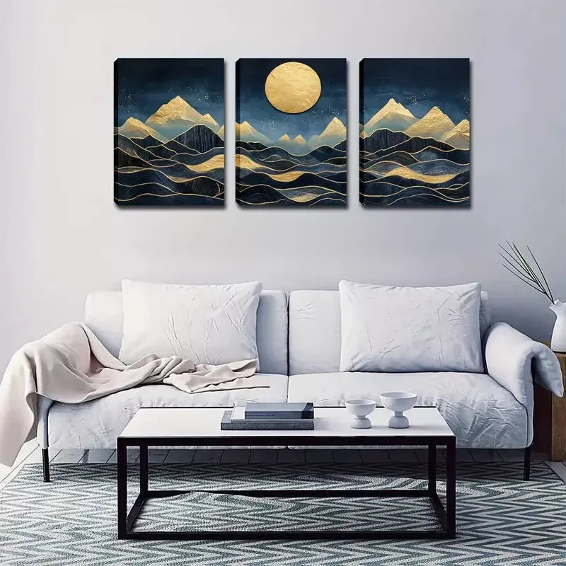 3pcs Abstract Mountain Moon Landscape Wall Art Set Canvas Framed 40x60cm - High Quality Print 100% Australian Made Wall Canvas Ready to Hang