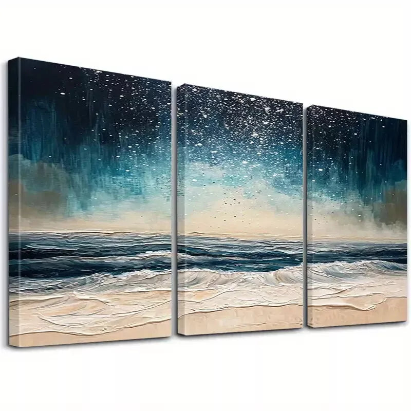 3pcs Abstract Night Beach Waves Classic Wall Art Set Canvas Framed 40x60cm - High Quality Print 100% Australian Made Wall Canvas Ready to Hang