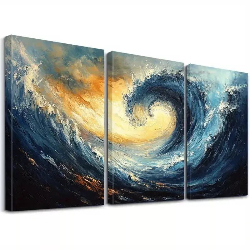 3pcs Abstract Ocean Wave Swirling Sea Motion Wall Art Set Canvas Framed 40x60cm - High Quality Print 100% Australian Made Wall Canvas Ready to Hang