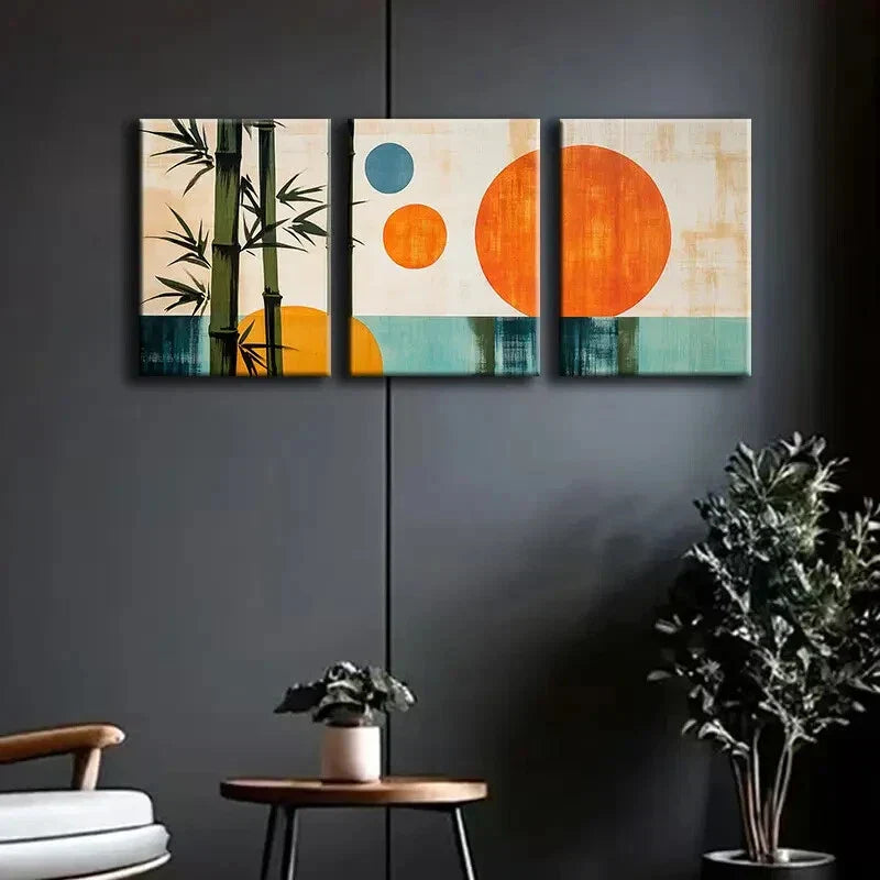 3pcs Abstract Painting of Bamboo Colorful Perfect Wall Art Set Canvas Framed 40x60cm - High Quality Print 100% Australian Made Wall Canvas Ready to Hang