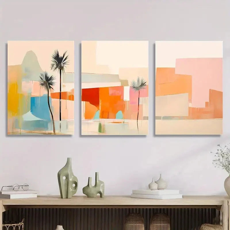 3pcs Abstract Palm Color Desert Palm Trees Metal Print Ready to Hang Art