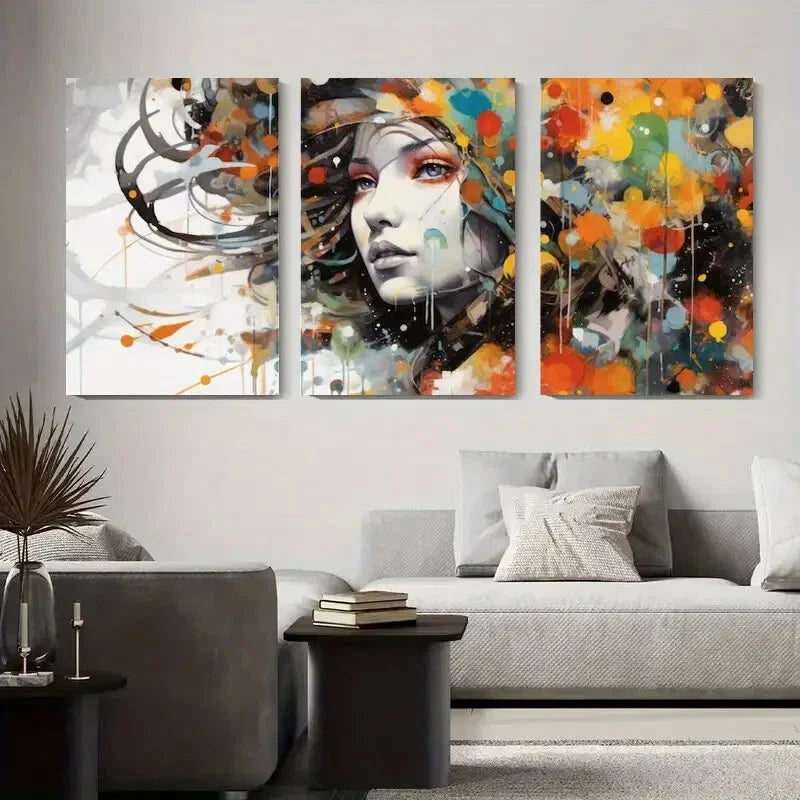 3pcs Abstract Portrait of Woman with Colorful Metal Print Ready to Hang Art