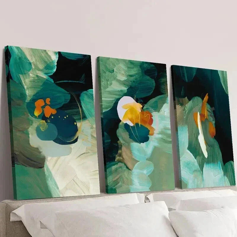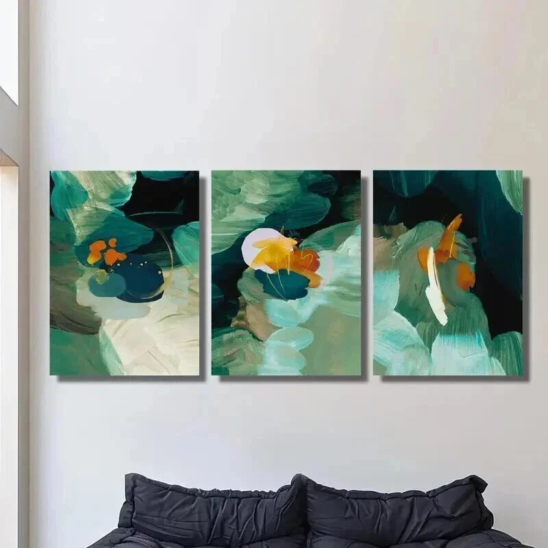 3pcs Abstract Simple Green Ink Painting Wall Art Set Canvas Framed 40x60cm - High Quality Print 100% Australian Made Wall Canvas Ready to Hang