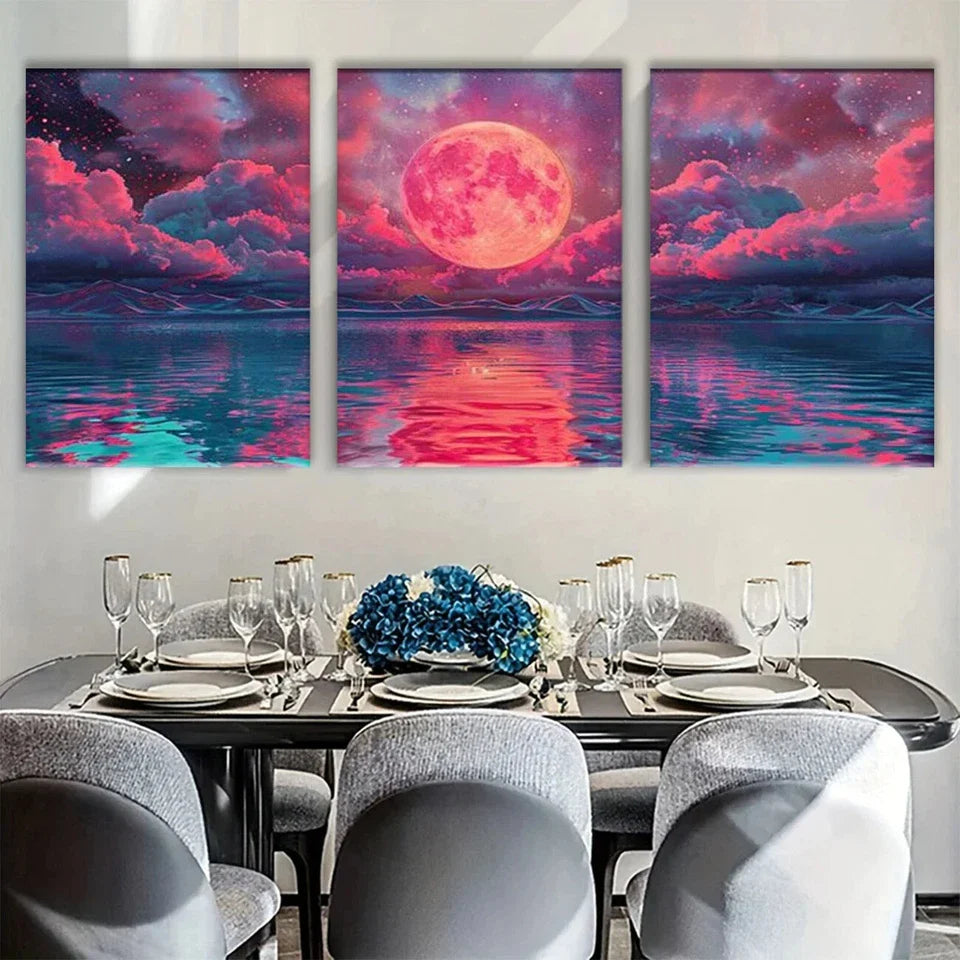 3pcs Abstract Stunning Pink Moon Metal Print Ready to Hang Art