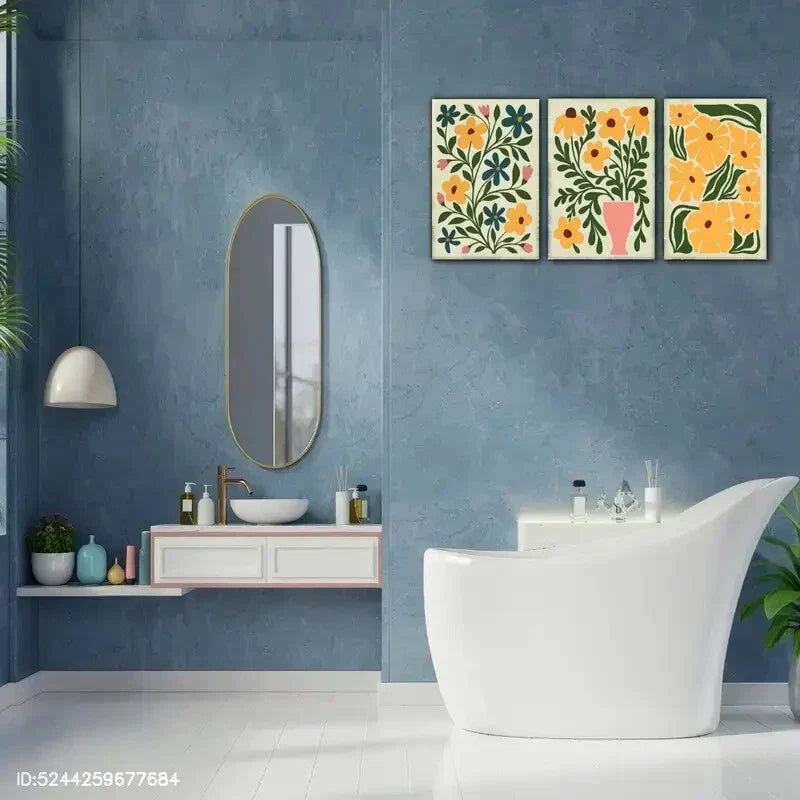3pcs Abstract Style Yellow & Orange Flowers Metal Print Ready to Hang Art