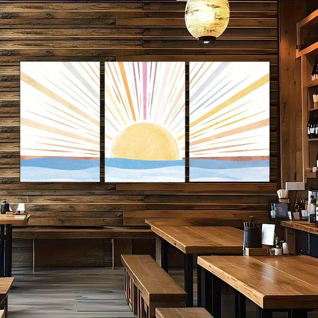 3pcs Abstract Sunrise and Rainbow Metal Print Ready to Hang Art