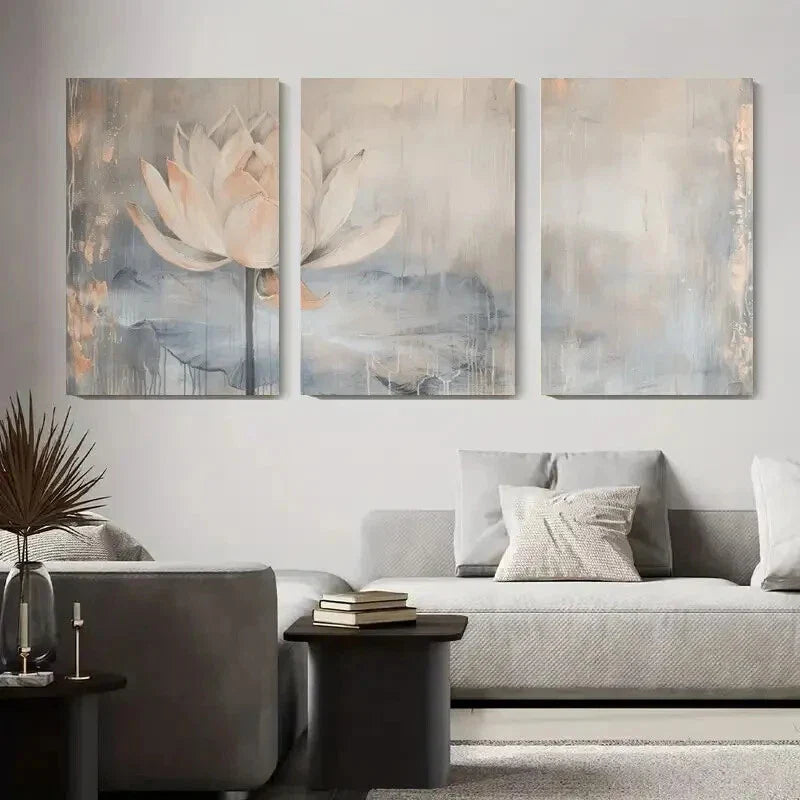 3pcs Abstract Watercolor Floral Lotus Flower Metal Print Ready to Hang Art
