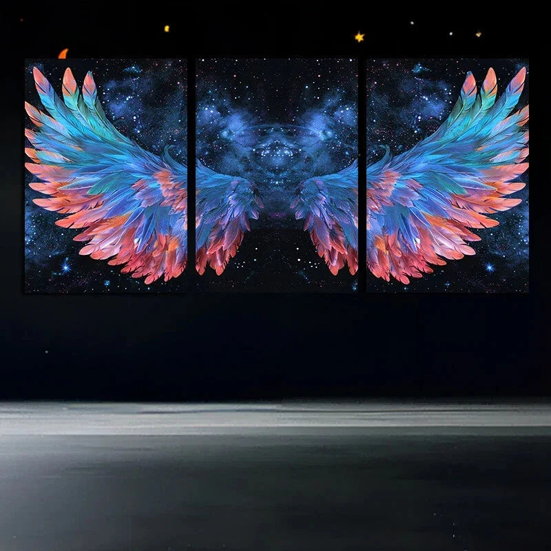 3pcs Abstract Wings Golden Blue Metal Print Ready to Hang Art