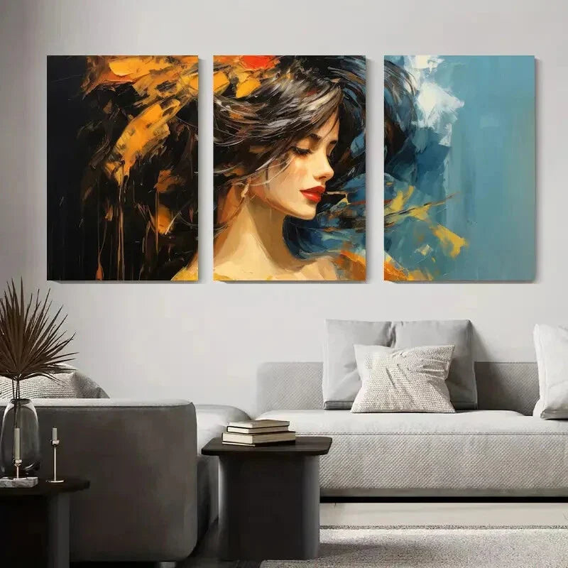 3pcs Abstract Woman Portrait Elegant Female Metal Print Ready to Hang Art