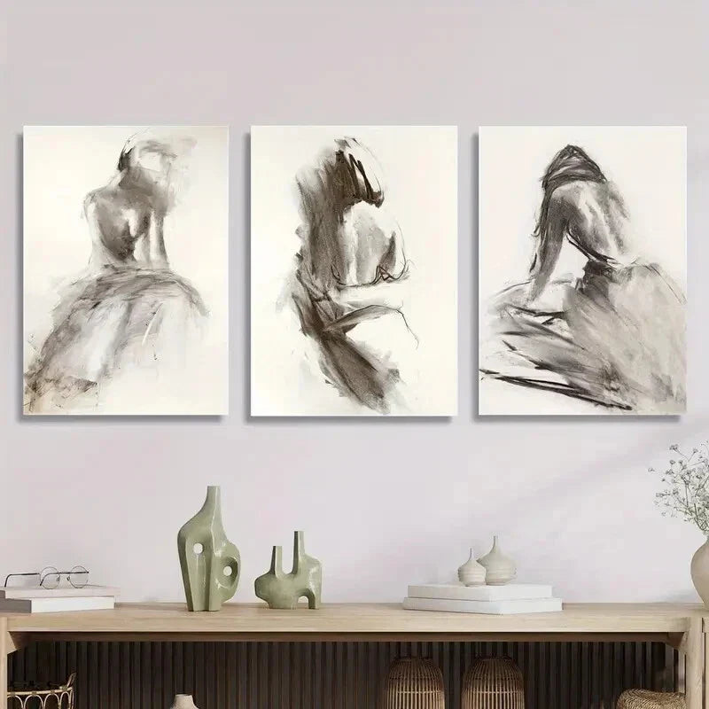 3pcs Abstract Woman Sketch , Metal Print Ready to Hang Art