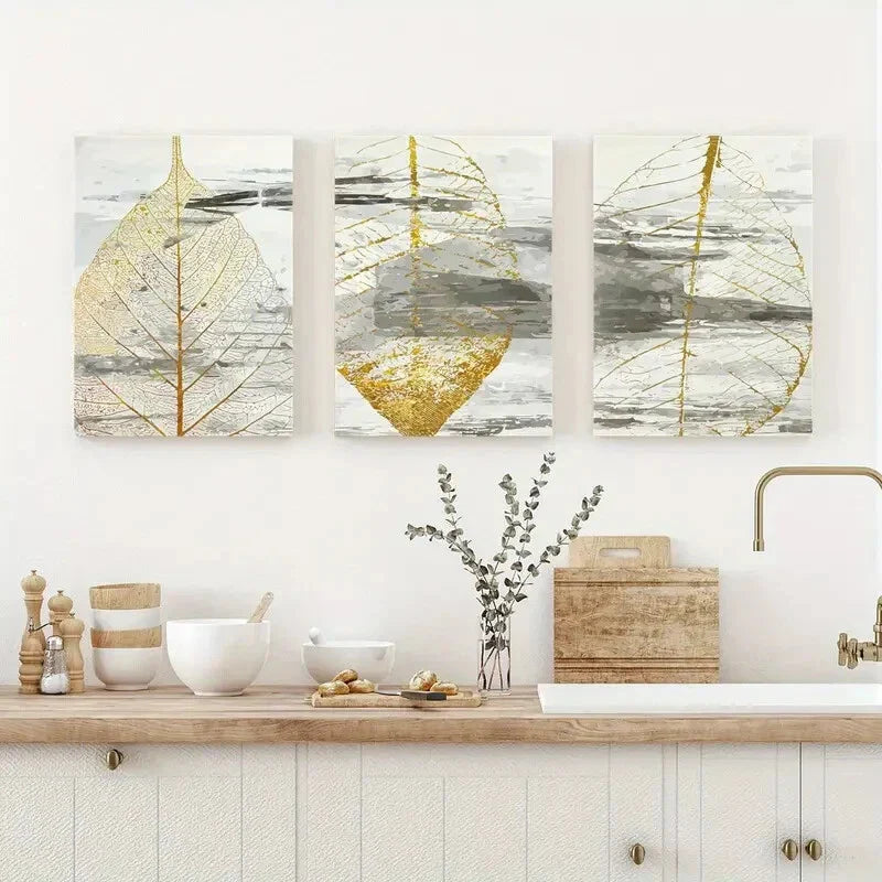 3pcs Abstract Yellow Leaves Metal Print Ready to Hang Art