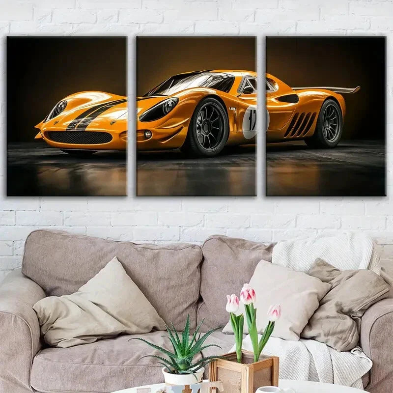 3pcs Abstract Yellow Sport Car Black Gold White Wall Art Set Canvas Framed 40x60cm - High Quality Print 100% Australian Made Wall Canvas Ready to Hang