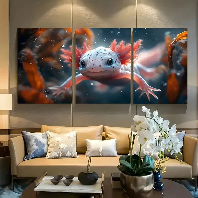 3pcs Adorable Axolotl Underwater Aquatic Themed Metal Print Ready to Hang Art
