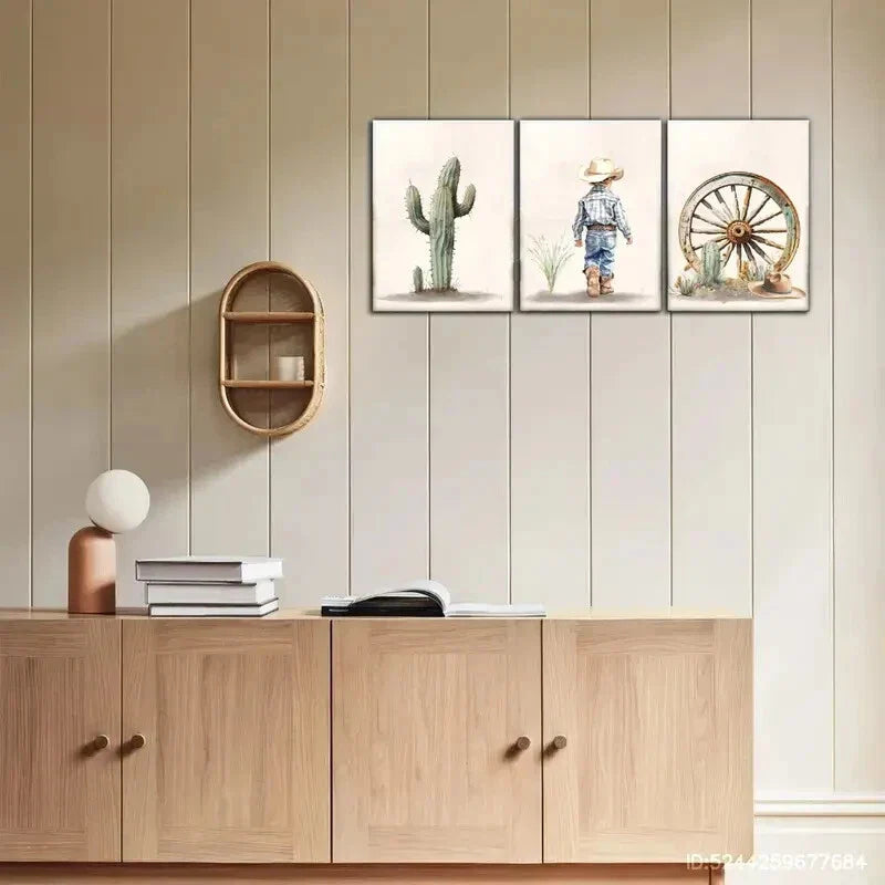 3pcs Aesthetic Cactus Print with Cowboy Western Hat Metal Print Ready toHang Art