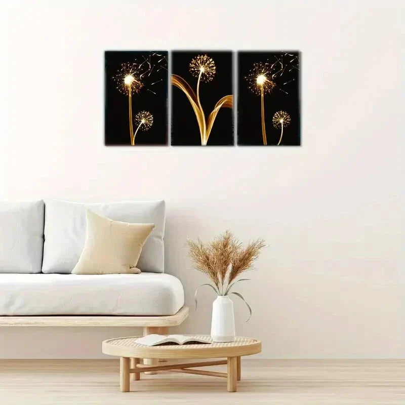 3pcs Aesthetic Golden Plants on Dark Background Metal Print Ready to Hang Art