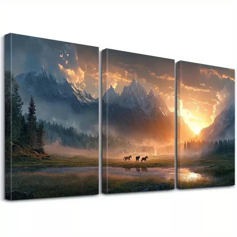 3pcs Aesthetic Running Horses and Sunset Wall Art Set Canvas Framed 40x60cm - High Quality Print 100% Australian Made Wall Canvas Ready to Hang