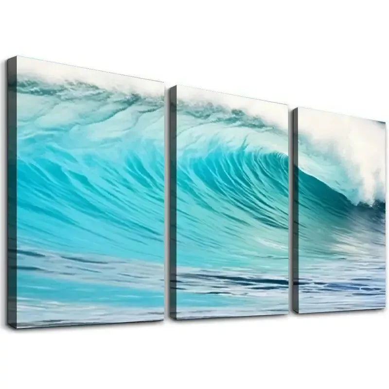 3pcs Aesthetic Turquoise Waves at Sandy Beach Wall Art Set Canvas Framed 40x60cm - High Quality Print 100% Australian Made Wall Canvas Ready to Hang