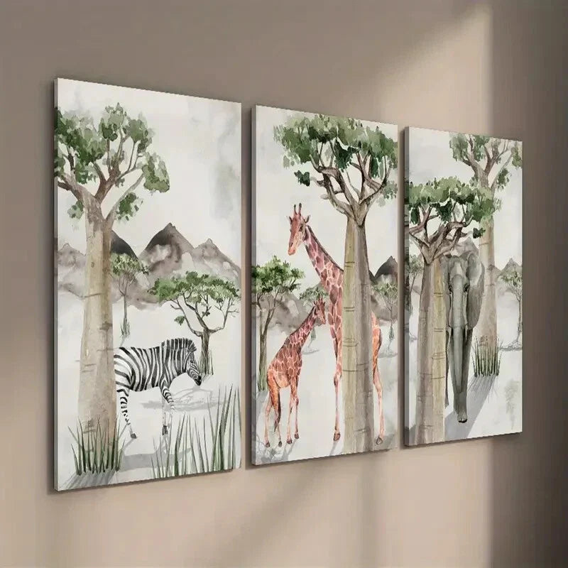 3pcs African Animals Jungle Theme Wall Art Set Canvas Framed 40x60cm - High Quality Print 100% Australian Made Wall Canvas Ready to Hang