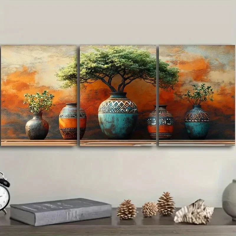 3pcs African Vases for Home Painting Metal Print Ready to Hang Art