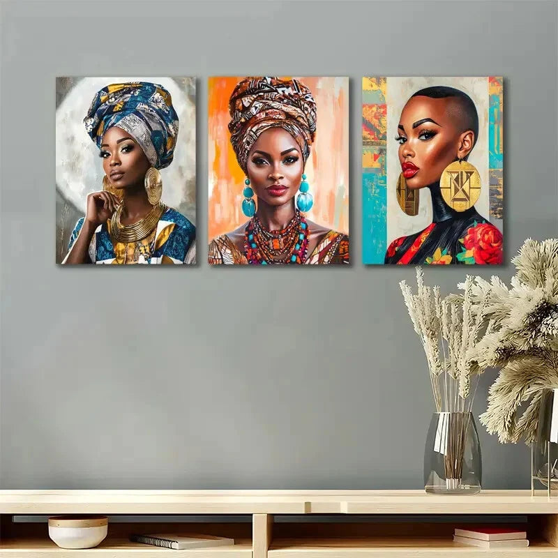 3pcs African Woman Elegant Cultural Metal Print Ready to Hang Art