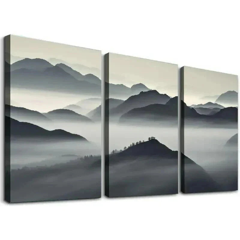 3pcs Ales Krivec Mountain Layers Decor Wall Art Set Canvas Framed 40x60cm - High Quality Print 100% Australian Made Wall Canvas Ready to Hang