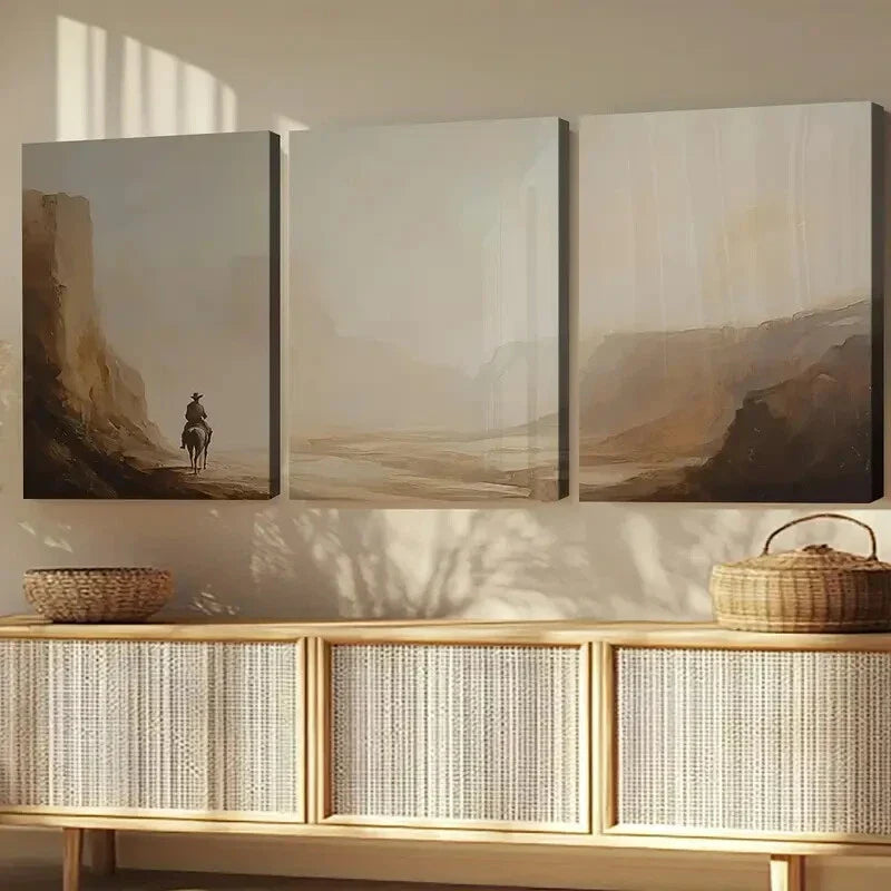 3pcs American Canyon Landscape Horse Vintage Wall Art Set Canvas Framed 40x60cm - High Quality Print 100% Australian Made Wall Canvas Ready to Hang