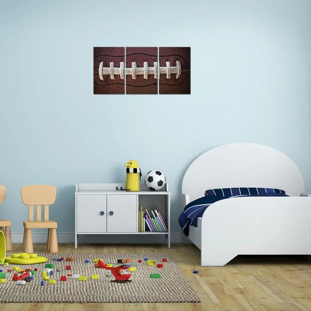 3pcs American Rugby Brown Themed White Lines Metal Print Ready to Hang Art