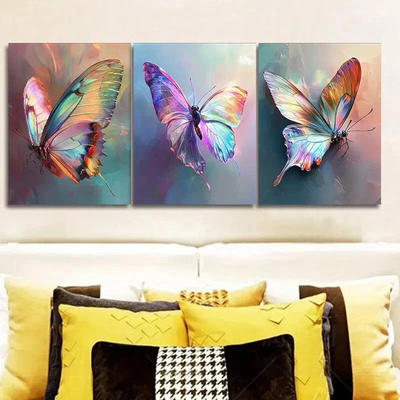 3pcs An Iridescent Luxurious Butterfly Metal Print Ready to Hang Art