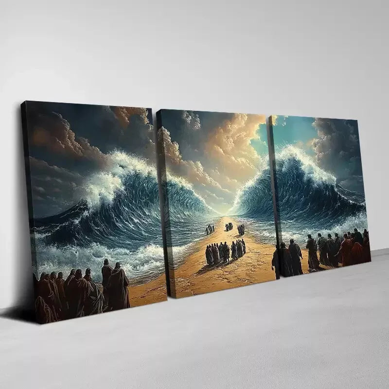 3pcs Ancient Beautiful Sea Division with People Wall Art Set Canvas Framed 40x60cm - High Quality Print 100% Australian Made Wall Canvas Ready to Hang