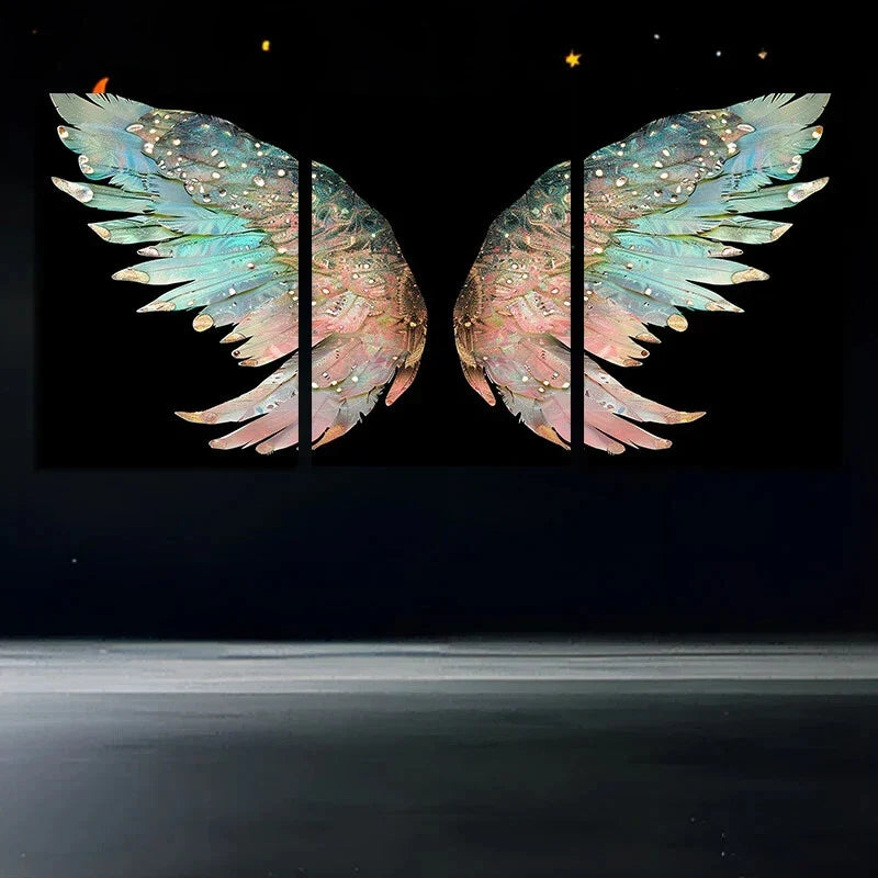 3pcs Angel Wings Blue Rose Stunning Gold Metal Print Ready to Hang Art