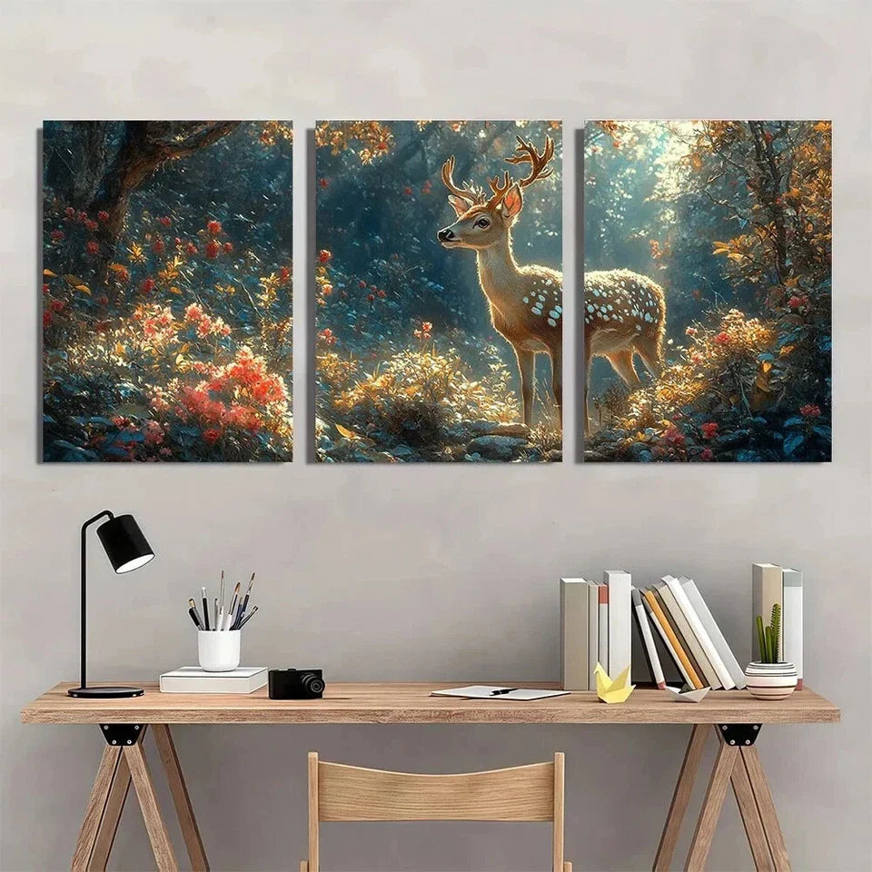 3pcs Animal Aesthetic Deer Forest Metal Print Ready to Hang Art