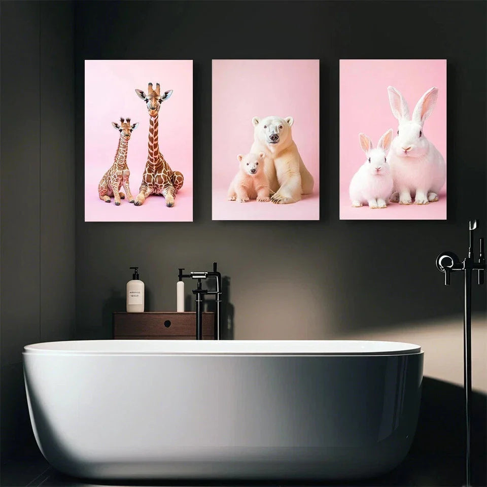 3pcs Animal Parent Child Abstract Paintings Metal Print Ready to Hang Art
