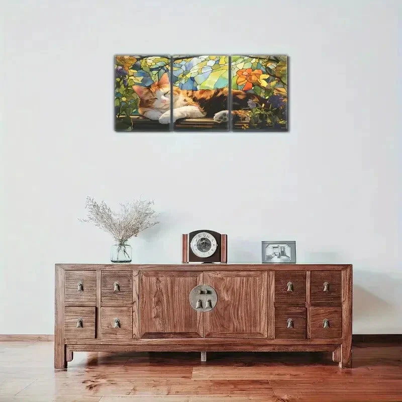 3pcs Animal Portrait Art Posters Stained Glass Metal Print Ready to Hang Art