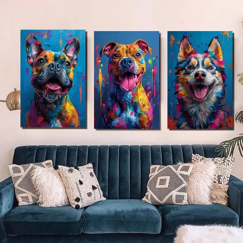 3pcs Animal Themed Modern Dog Wall Art Set Canvas Framed 40x60cm - High Quality Print 100% Australian Made Wall Canvas Ready to Hang