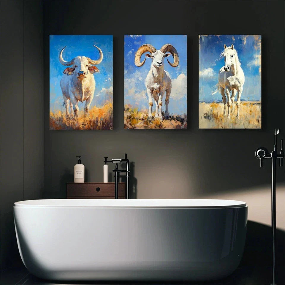 3pcs Animals And Lawn Scenes Abstract Metal Print Ready to Hang Art