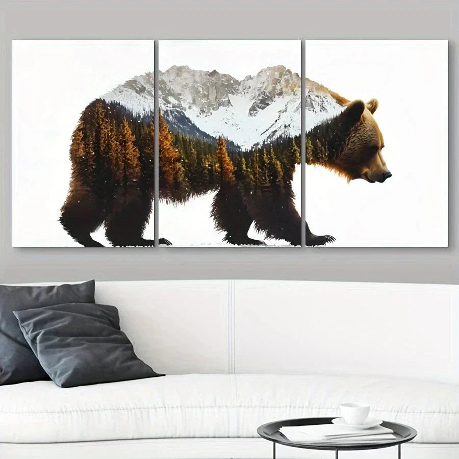 3pcs Arctic Grizzly Bear Triptych Metal Print Ready to Hang Art