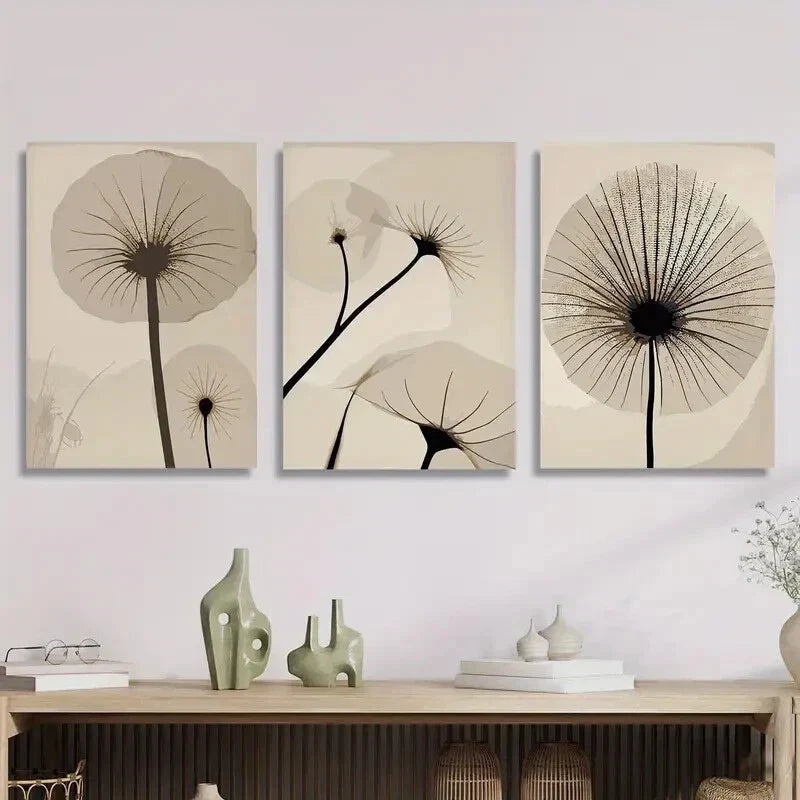 3pcs Art Deco Botanical Line Art Ink Floral Metal Print Ready to Hang Art