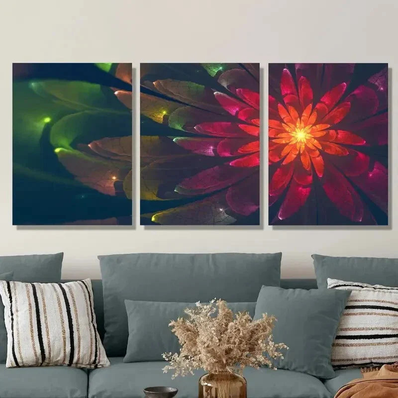 3pcs Art Deco Chrysanthemum Metal Print Ready to Hang Art