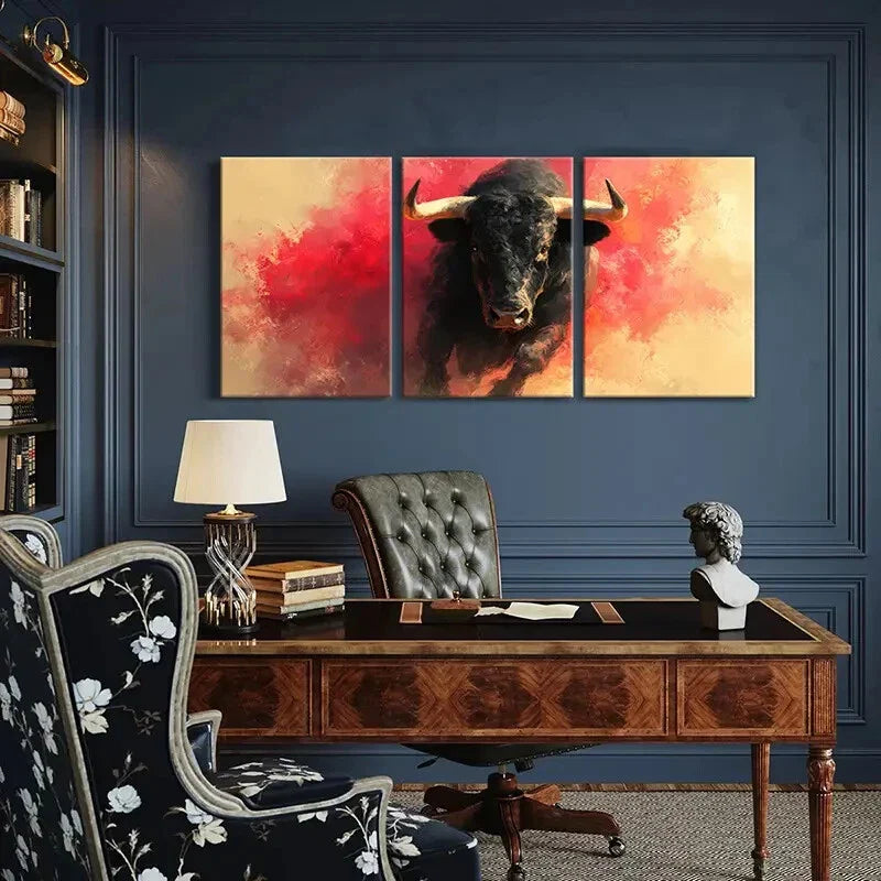 3pcs Artistic Bull Painting Abstract Design Metal Print Ready to Hang Art