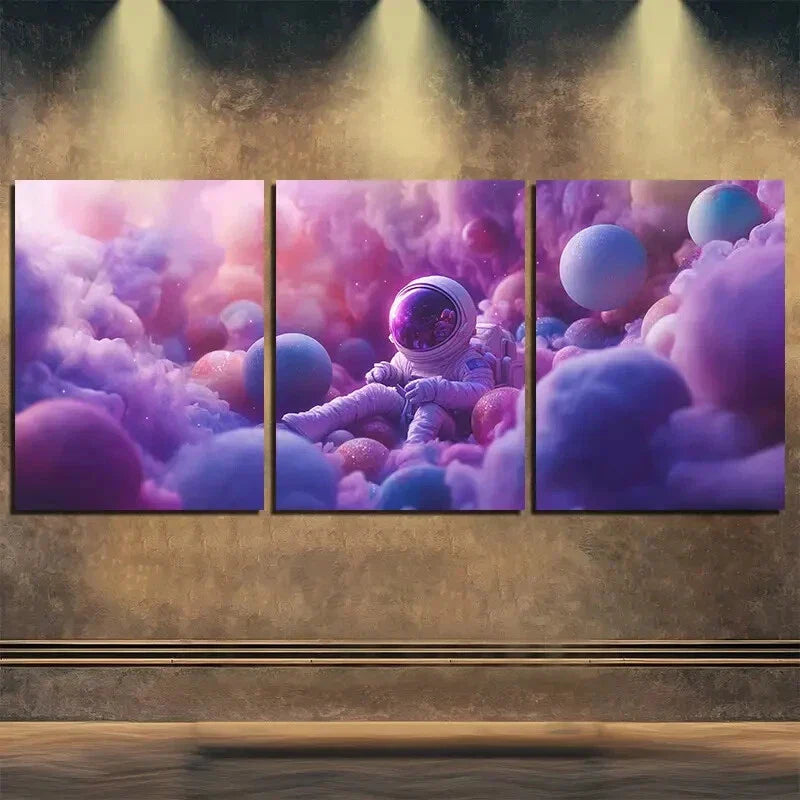 3pcs Astronaut in Colorful Nebula Pink Perfect Wall Art Set Canvas Framed 40x60cm - High Quality Print 100% Australian Made Wall Canvas Ready to Hang