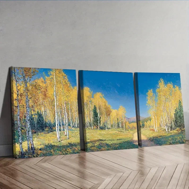 3pcs Autumn Birch Forest Scene With Trees Wall Art Set Canvas Framed 40x60cm - High Quality Print 100% Australian Made Wall Canvas Ready to Hang
