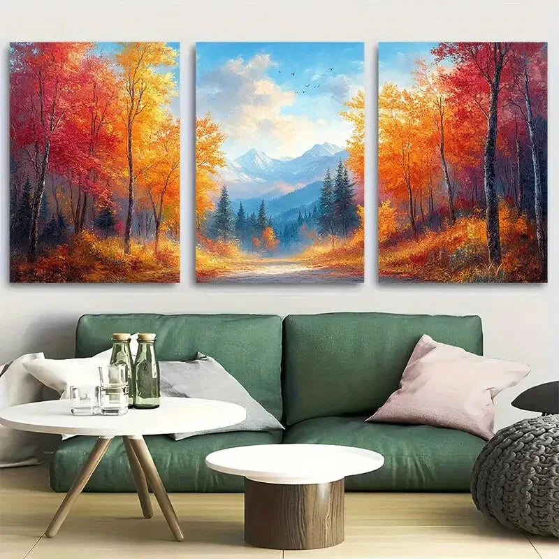 3pcs Autumn Forest Landscape with Blue Sky Metal Print Ready to Hang Art