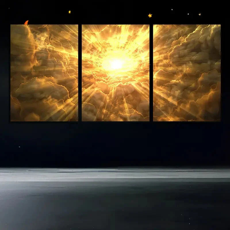 3pcs Baiyun Radiant Sunburst White Metal Print Ready to Hang Art