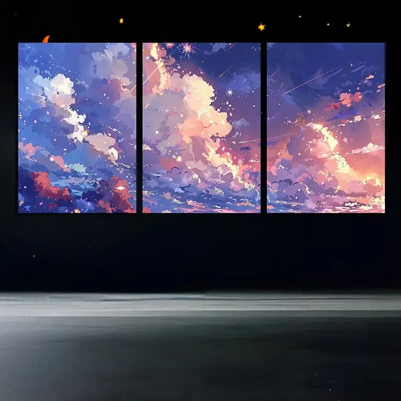 3pcs Baiyun White Clouds and Sunset Metal Print Ready to Hang Art