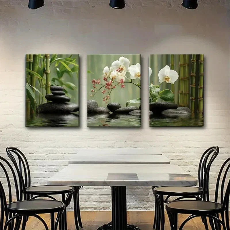 3pcs Bamboo Orchids And Stacked Stones Metal Print Ready to Hang Art