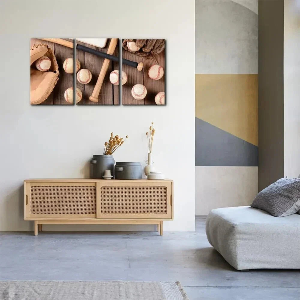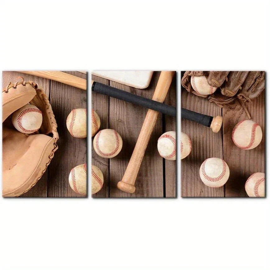 3pcs Baseball Equipment Bats and Glove Painting Metal Print Ready to Hang Art